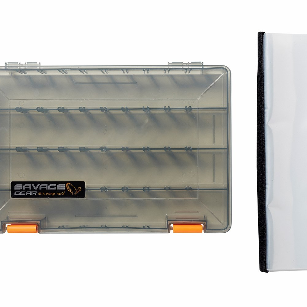Bądź wszechstronny dzięki tej praktycznej, dwustronnej torbie z klapką. Z jednej strony znajduje się pudełko na przynęty i główki jigowe, a z drugiej 12 wytrzymałych, wielkości toreb PE na akcesoria.